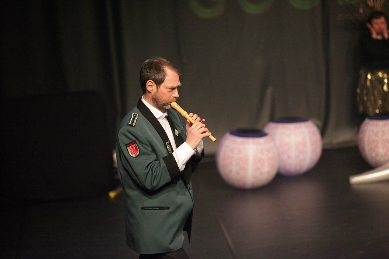 Gerne spiele ich auch mit, wenn es sich anbietet. Als Teil vom Ensemble, bin ich manchmal als Musizierender in das Spiel eingebunden. Wenn ich auf der Bühne nicht viel reden muss, bin ich dafür immer offen.