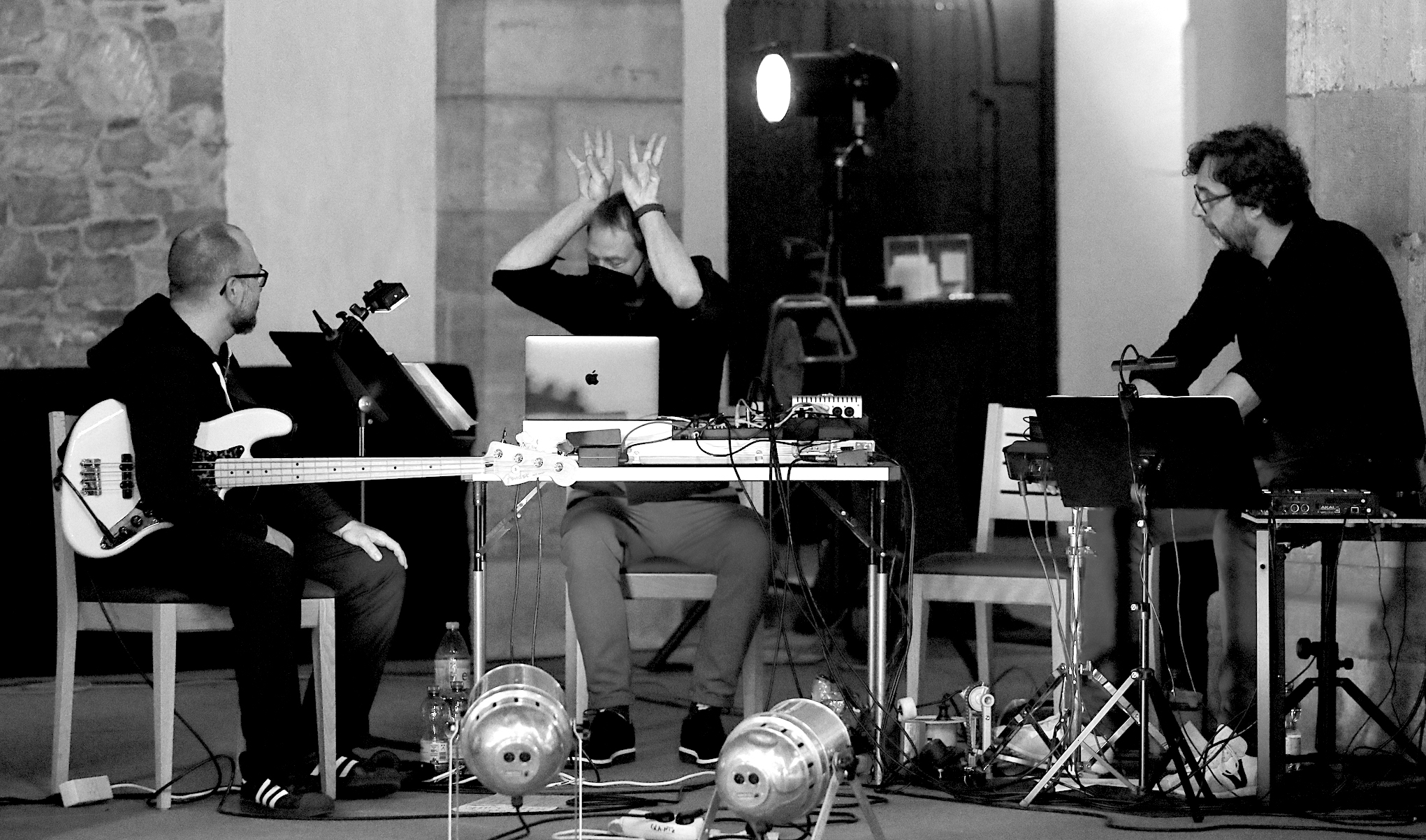 Die Tracks werden live gespielt oder abgespielt von CD, digital Multitrack, Cassette, Computer, Telefon oder Vinyl. Jedes Stück hat seine eigenen Gesetze. Für fliegende, schwebende, schwimmende oder tauchende Shows, mit und ohne live Musik. Fast alles ist möglich.