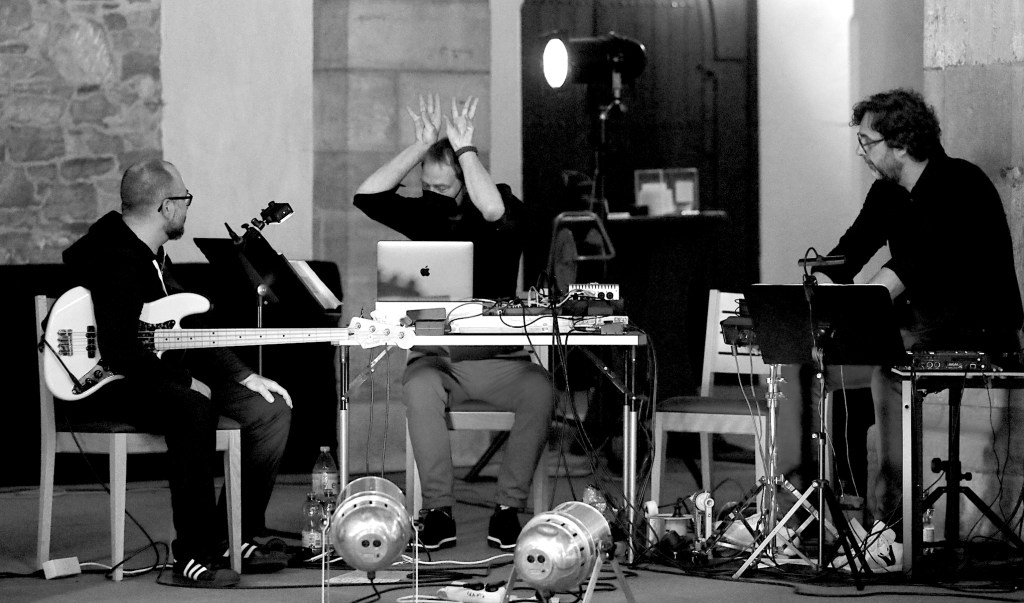 Der Soundtrack/die Musik oder Klangcollage, wird von mir eigens für die benötigten Szenen komponiert, bei den Proben ausprobiert und im geeigneten Studio produziert. Bis es passt, bis alle glücklich sind.